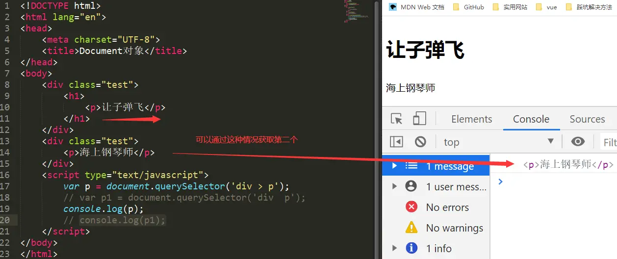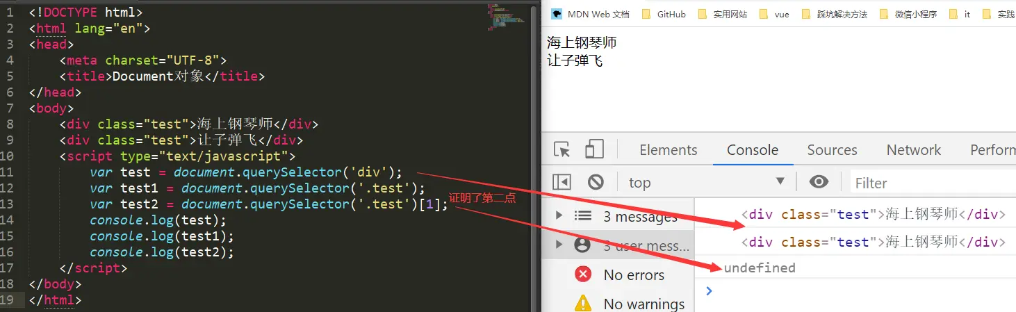 - 可通过的是id、class或标签获取元素,在括号内的写法与CSS选择器类似,如document.querySelector('#test')、document.querySelector('.test')\document.querySelectorAll('div')。