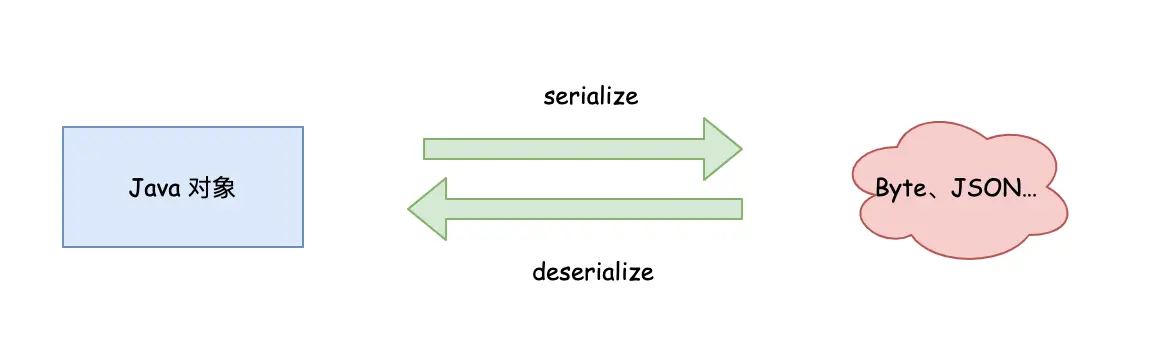 首先我们需要了解一下序列化,我们可以简单了理解序列化就是把 Java 对象转换成另一种形态的数据,这种形态的数据可以用于存储或者是传输。因为本身 Java 对象是存在内存中,没有办法直接存储或者是传输,序列化的出现来解决这个问题,那么反序列化就是把形态数据重新转换为 Java 对象。当然这个形态可以是多种格式,比如我们详知的 JSON,或者是 Byte,也可以是我们的自定义形式,比如 K-V 形式,如下图。