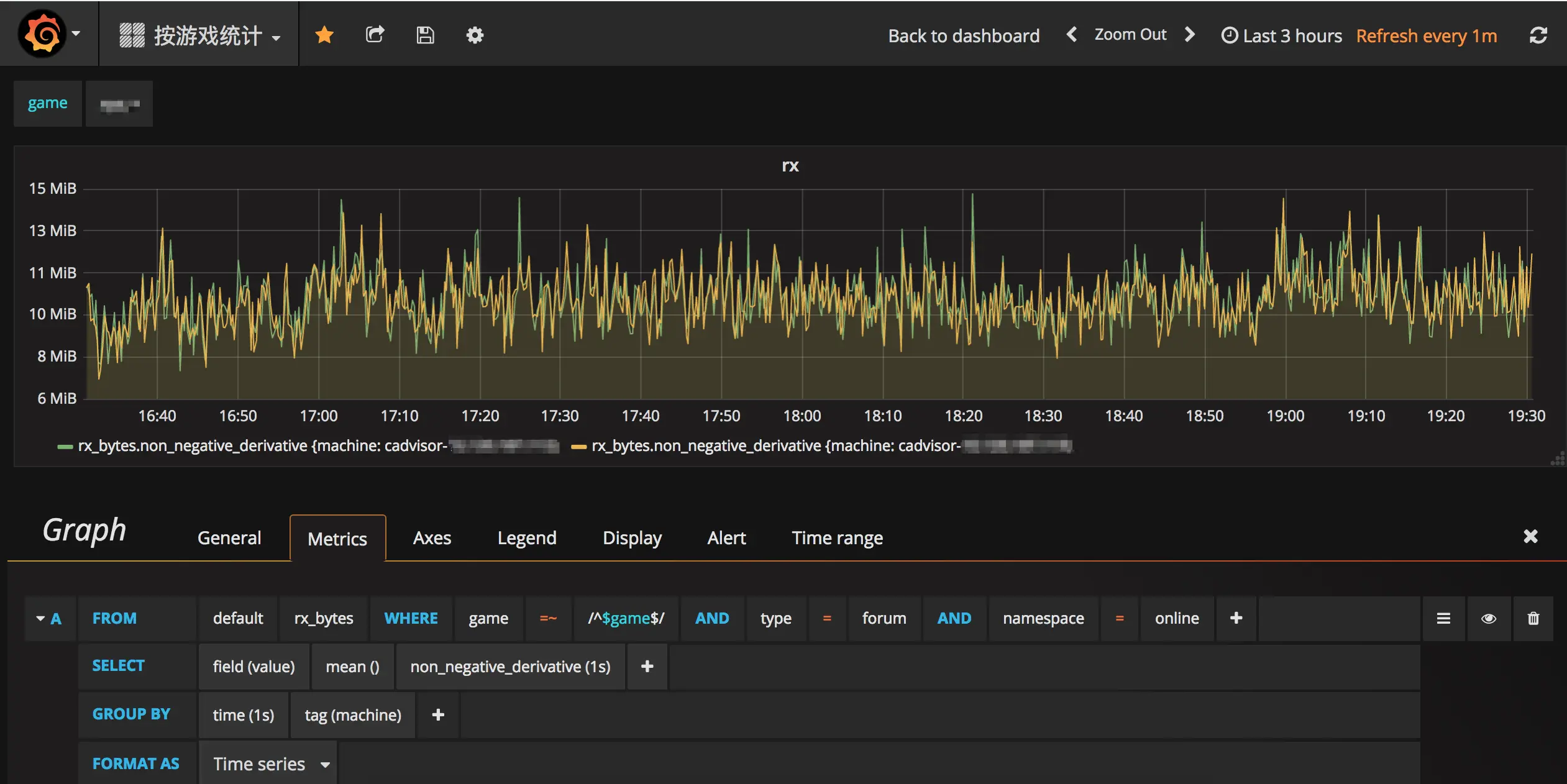 在CAdvisor上线一段时间后,顺安发现容器的网络数据跟实际情况不符,并查找资料后发现问题是因为CAdvisor默认只统计第一个网卡的流量,而在我们的容器中是有多个overlay网络的,需要统计容器中所有的网卡流量。于是我修改了CAdvisor统计网络流量部分的代码并重新编译了一个版本在线上使用,修改的代码在这里。