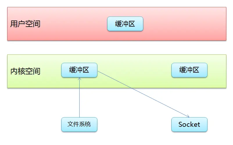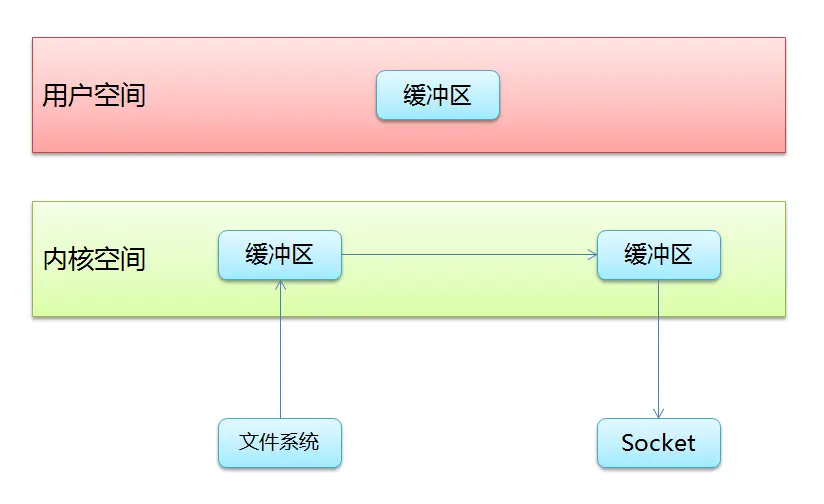 - sendfile 系统调用,文件被 copy 至内核缓冲区