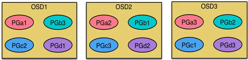 - pg到OSD的映射的过程算法叫做CRUSH 算法。(一个Object需要保存三个副本,也就是需要保存在三个osd上)。