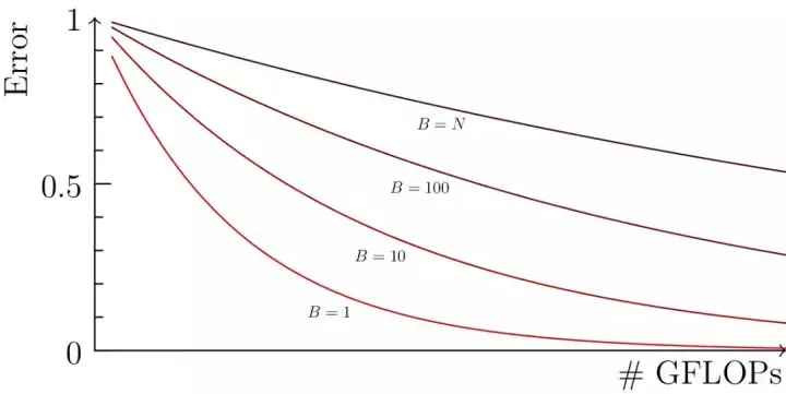 但是,从 2017 年开始,有一些看起来前景明朗的研究显示,我们可以用 8192 甚至 32768 作为批规模来高效训练用于图像的卷积神经网络。