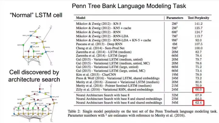 在自动机器学习技术的种种方法中,谷歌选择了强化学习的方法。模型的准确度被视为「奖励信号」。在获得了 ICLR2017 最佳论文的《用强化学习进行神经网络结构搜索》中,谷歌的研究员分别为 CIFAR-10 和 PTB 数据集搜索到了最佳的 CNN 和 LSTM RNN 结构。