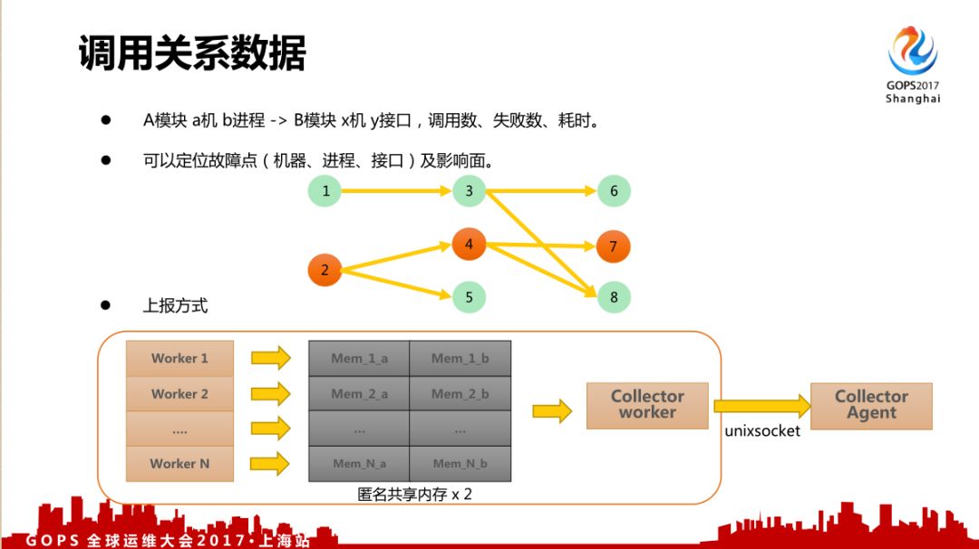 后台数据里面还有一个重要数据是调用关系数据,在故障分析定位中有非常大的作用。