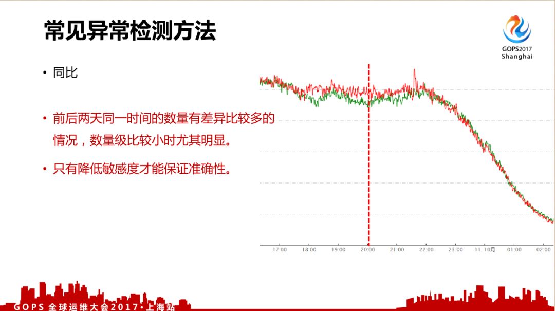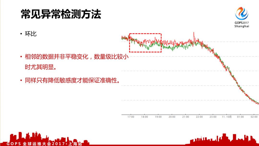 第二个是同比,存在的问题是我们的数据都不是每天同一时间的数据是一样的,周一到周六会存在比较大的差异,只能降低敏感度才能保证准确性;
