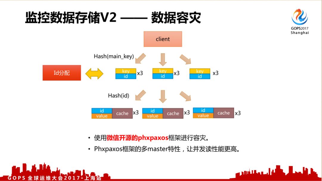 一般来说做到高容灾、数据强一致性比较难,但微信后台已经开源了自行研发的phxpaxos协议框架,使用这个框架可以很容易可以实现数据容灾。