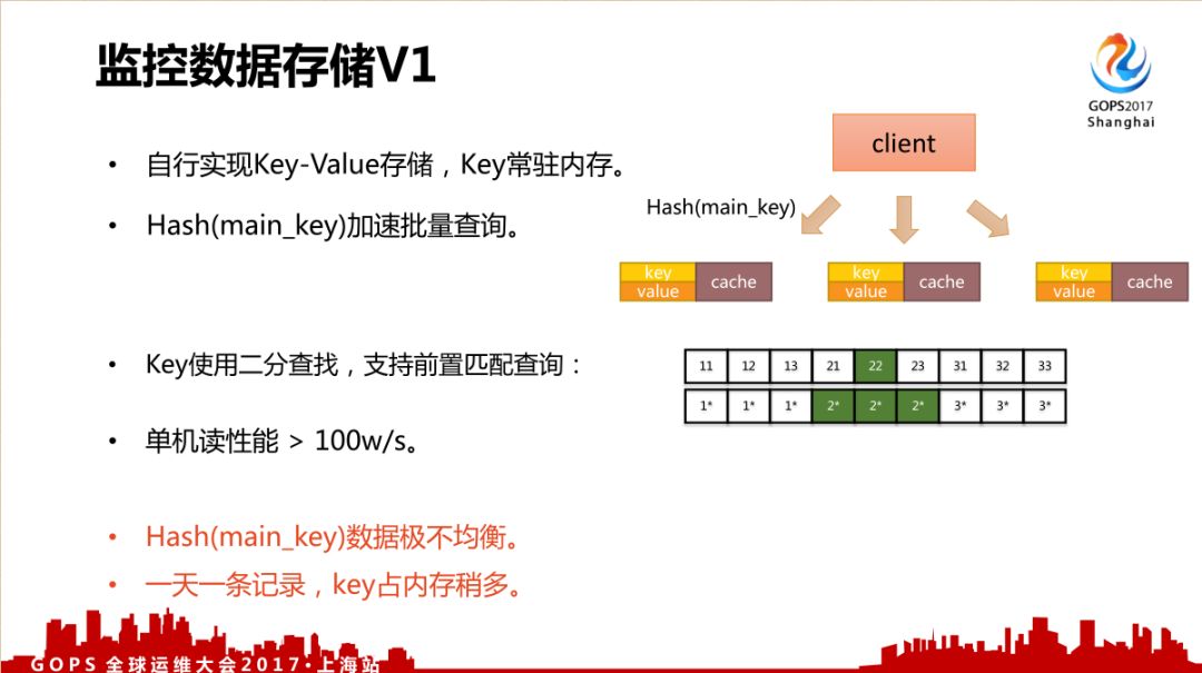 不过它也存在一些问题,比如hash(main_key)数据不均衡,而且1天一条记录,key占内存太多。