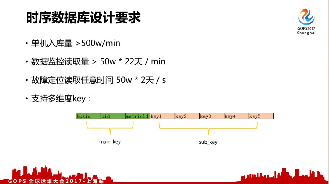 首先写入性能基本要求是总入库量可能一分钟有2亿条以上,单机至少要求500w/min能入到这个数据量。数据读取性能需要能支撑每分钟读取50w×22天的监控读取。