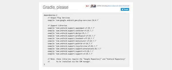 如果你的 Android Studio 编译系统使用的是Gradle,那么用一行代码就可以把第三方库添加到项目中了。但是如何才能快速的得到依赖的那行代码呢?这就是这个网站的方便之处了,它可以帮助你快速找到自己想要的库的依赖。
