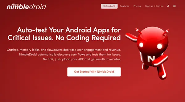 NimbleDroid是另一个测试app内存泄漏和严重问题的工具。它自动测试各种个样的用户操作找出潜在的问题。价格是可定制的。