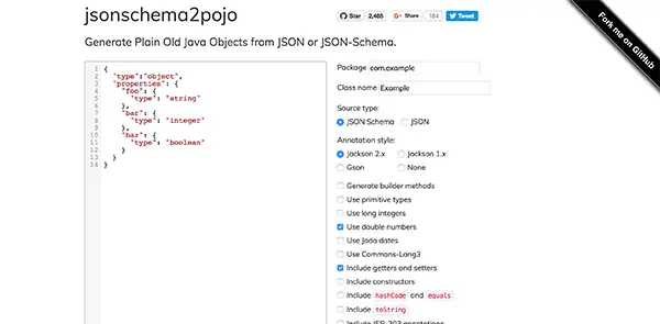 一个把json文件转换成你java类的在线工具。有多种自定义选项,非常好用。