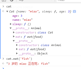 console.log(cat.eat('fish')); // cat 正在吃:fish