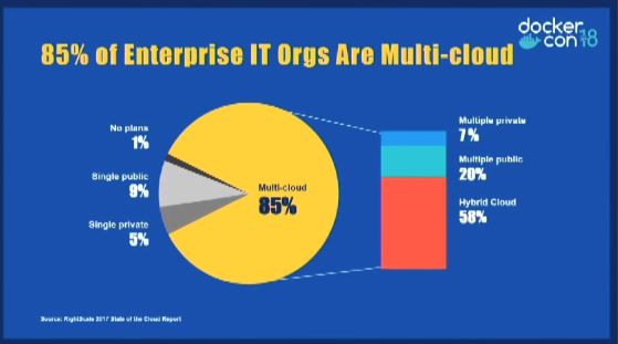 另外根据< RightScale 2018 State of the Cloud report> 的说法,有近一半的行业用户在采用Docker技术——虽然国内这一比例可能低些,但我们看到的情况是几乎大型企业的信息化部门都在关注基于Docker的容器技术。
