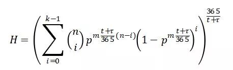 到此铺垫结束,公式出场。系统年化健康概率H的计算公式如下: