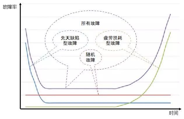 接下来,系统中剩下一群健康的青壮年磁盘,故障率自然会明显下降。然而磁盘这种每分钟要旋转成千上万次的物种,在欢脱的旋转了几万小时之后,还是会铁杵磨成绣花针,最终迎来衰老期。于是故障率又开始上升。
