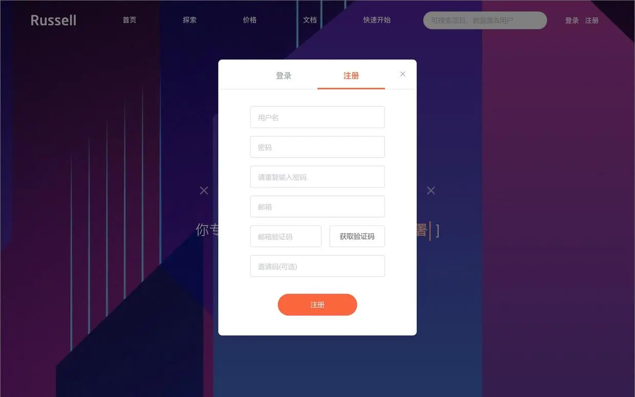 使用之前,请你先到 Russell Cloud 上注册一个免费账号。