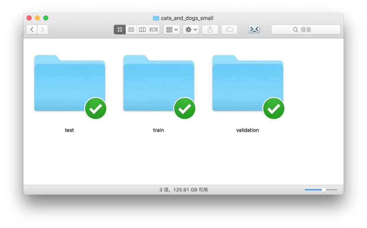 解压后目录中的另一个文件夹,cats_and_dogs_small,就包含了我们要使用和上传的数据集。