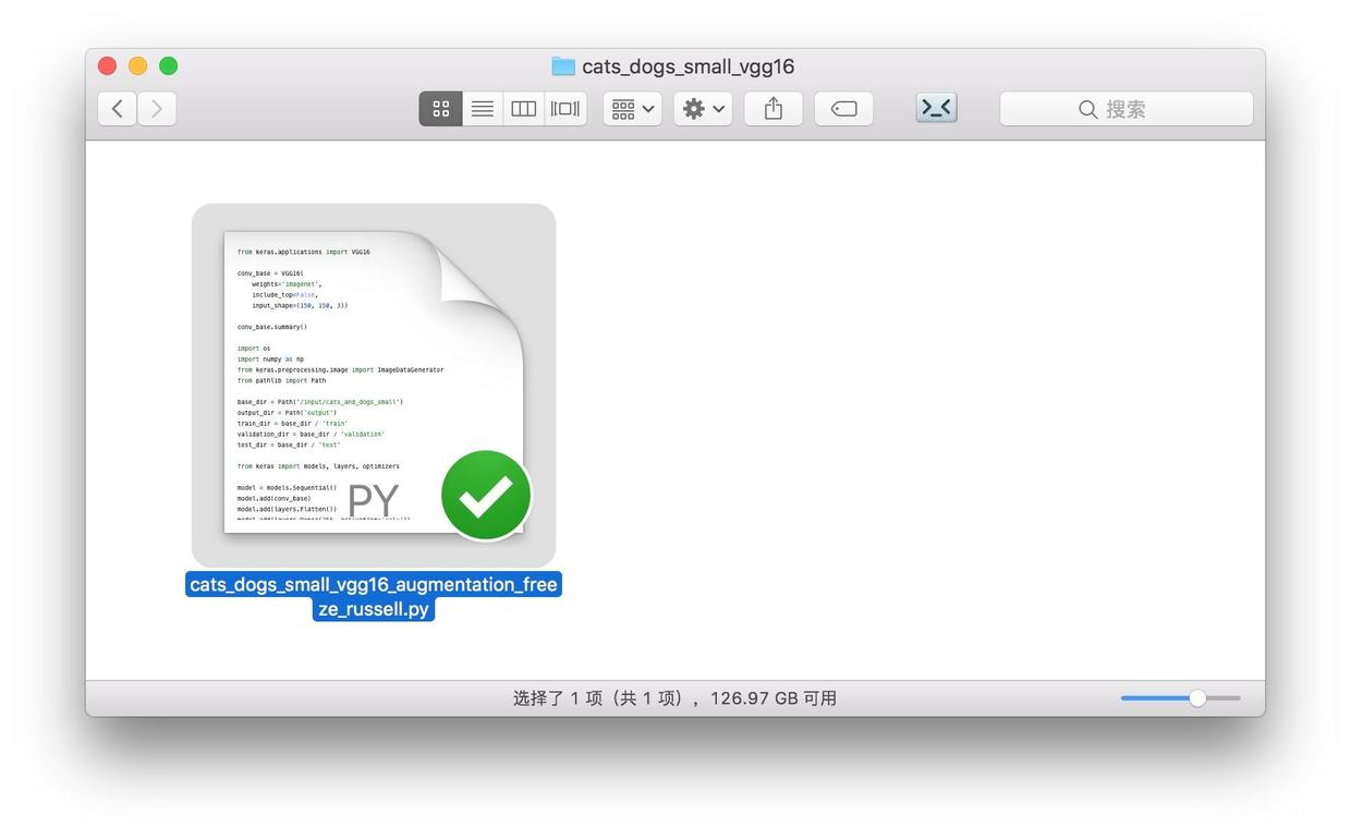 cats_dogs_small_vgg16 包含我们的运行脚本。只有一个文件。
