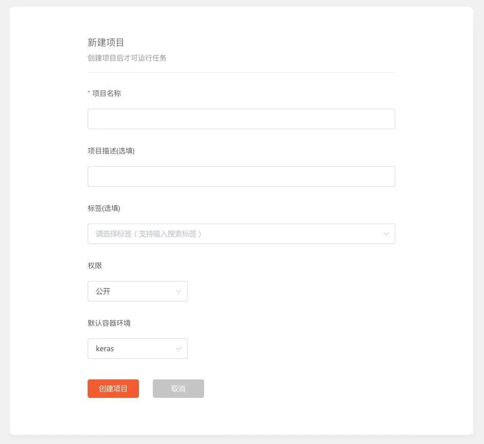要执行你自己的深度学习代码,你需要在 Russell Cloud 上面,新建一个项目。