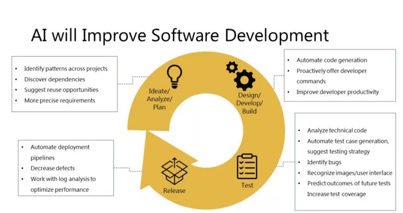 软件历程的每个阶段都将由人工智能来增强。在规划阶段,项目将会看到更好的分析、技术选择和重用其他项目代码的机会。随着人工智能生成大量代码,人类开发人员将能够更快地工作。由于人工智能协助 QA 工程师,测试将更加全面、严谨。当人工智能可以提供协助时,自动化部署也不会那么容易出错,并且速度会更快。