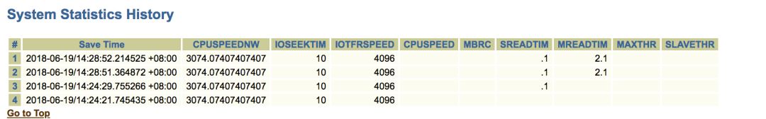 上图可以发现客户的系统是收集过系统统计信息的(报告为测试环境抓取的),再看单块读、多块读,MBRC(注测试环境模拟时,单块读、多块读数值差别较大,真实环境差别为十多倍,MBRC为3)均有统计信息,这点很是异常,毕竟看过的绝大部分系统都是没收集过系统统计信息的。