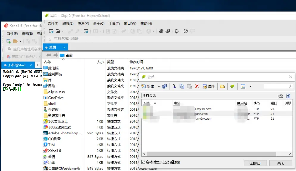 点击绿色文件夹的小图标,就能进入xftp的界面。