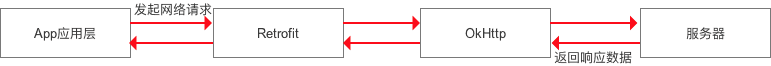 - App应用程序通过Retrofit请求网络,实际上是使用Retrofit接口层封装请求参数、Header、Url等信息,之后由OkHttp完成后续的请求操作。