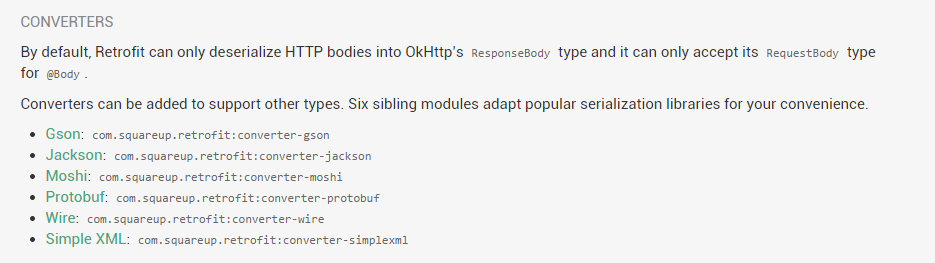 .addConverterFactory(GsonConverterFactory.create()) //设置数据解析器,这里表示用的是JSON解析返回值