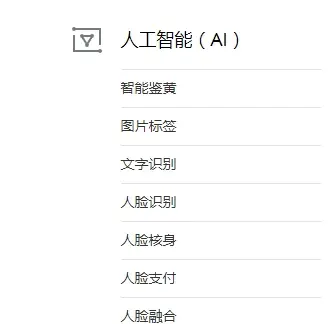 一共支持6大类(信息认证、人脸识别、文字识别、图片识别、人脸核身和人脸融合),35个接口,有些接口是提供了大量免费调用的机会,而有些可会要收费。 共提供两种调用方式。