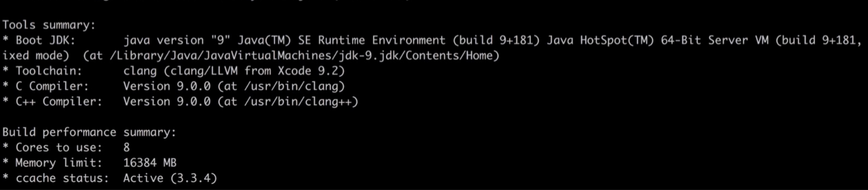 但是笔者编译openjdk1.9的时候,总是报错boot jdk版本不对,非常蛋疼(笔者机器上装的1.8)。一开始我以为是路径不对,改了几次发现,其实编译会自动扫描JAVA_HOME下的jdk版本并且找一个合适的,在此提醒各位,如果发现有类似的问题,赶紧按照提示用brew cask install java下载一个最新版本的jdk就好了。