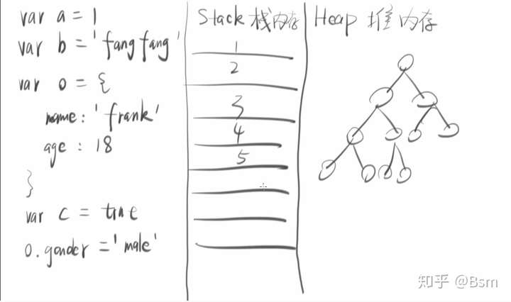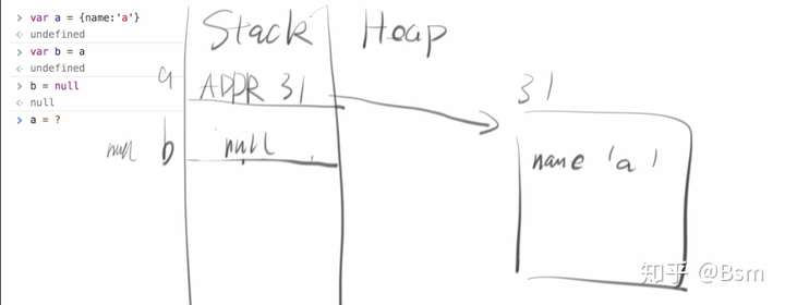 step3 每逢声明语句,对象类型地址写入Stack,值写入Heap,并用箭头连接两者