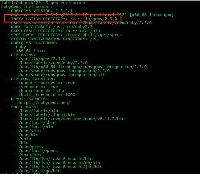 执行 gem environment 找到 INSTALLATION DIRECTORY