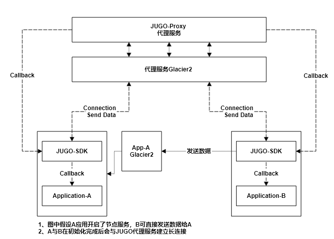 此文档面向开发者介绍如何使用JUGO-SDK及其相关注意事项。同时,阅读此文档的开发者需要具备分布式系统中间件(Ice)的基础知识——JUGO-SDK使用RPC协议进行数据传输,使用了Ice中的Glacier2进行防火墙穿透。