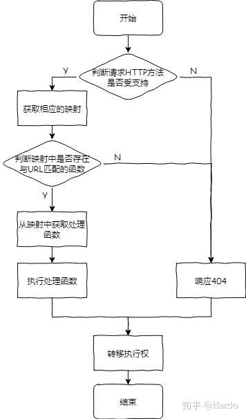 - 根据请求的方法与地址查找是否已经注册与之匹配的路由处理器