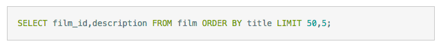 有时候如果可以使用书签记录上次取数据的位置,那么下次就可以直接从该书签记录的位置开始扫描,这样就可以避免使用OFFSET ,比如下面的查询: