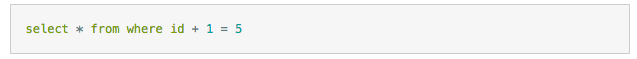 我们很容易看出其等价于 id = 4,但是MySQL无法自动解析这个表达式,使用函数是同样的道理。