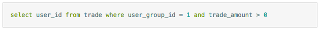 多数情况下使用这个原则没有任何问题,但仍然注意你的数据中是否存在一些特殊情况。举个简单的例子,比如要查询某个用户组下有过交易的用户信息: