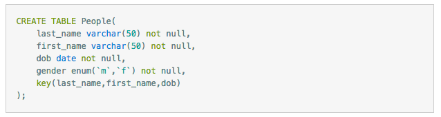 对于表中每一行数据,索引中包含了last_name、first_name、dob列的值,下图展示了索引是如何组织数据存储的。