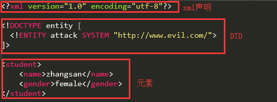 在DTD中,可以引进实体,在解析XML时,实体将会被替换成相应的引用内容。该实体可以由外部引入(支持http、ftp等协议,后文以http为例说明),如果通过该外部实体进行攻击,就是XXE攻击。