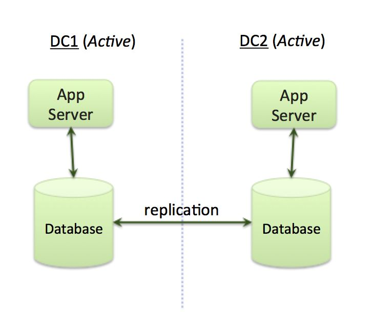 当组织考虑在多个跨数据中心(或区域云)部署应用时,他们通常会希望使用“双活”的架构,即所有数据中心的应用服务器同时处理所有的请求。