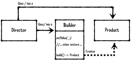 - 建造者(Builder): 通常是个类,用来管理Product的创建和数据输入