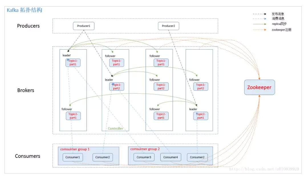 当需要增加broker结点时,新增的broker会向zookeeper注册,而producer及consumer会根据注册在zookeeper上的watcher感知这些变化,并及时作出调整。