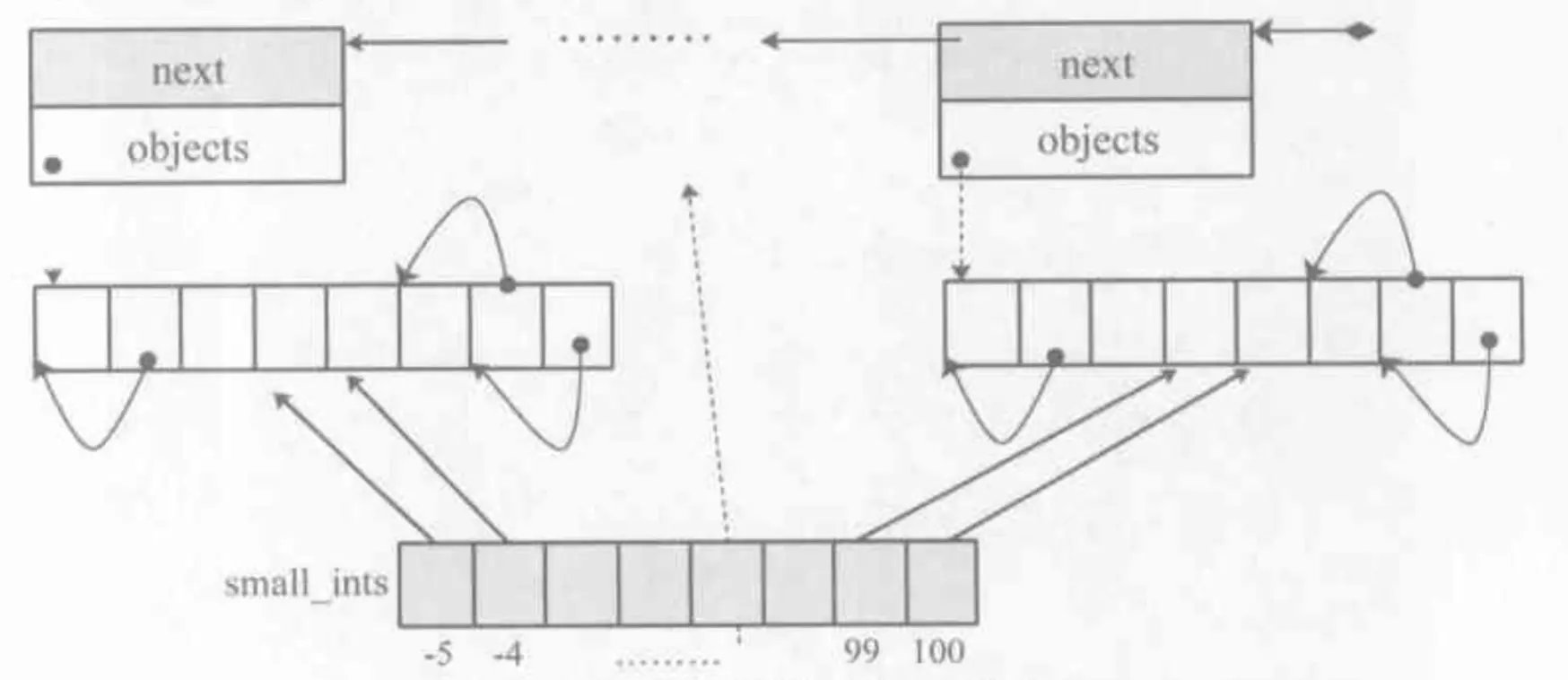 以下的数据结构是维护python整型内存结构。用单向链表进行维护