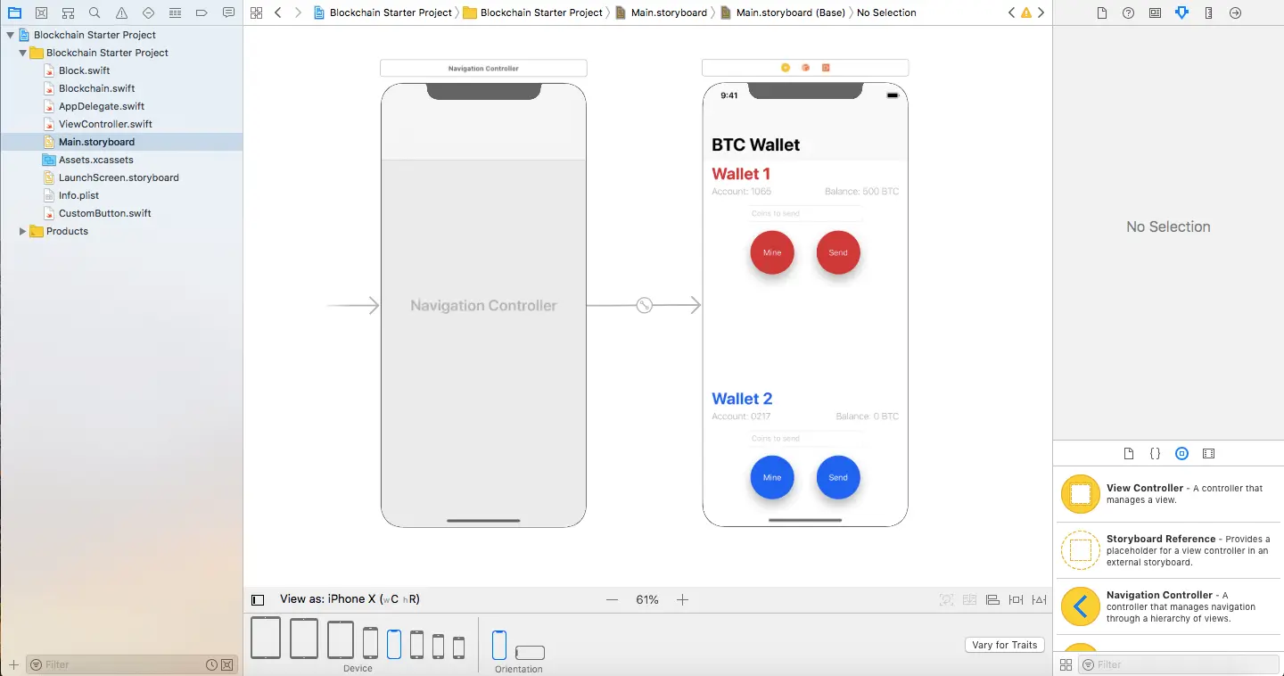现在你了解区块链是如何运作了,那么开始来制作我们的范例App吧!请先下载初始项目。 (https://raw.githubusercontent.com/appcoda/BlockchainDemo/master/BlockchainStarter.zip)