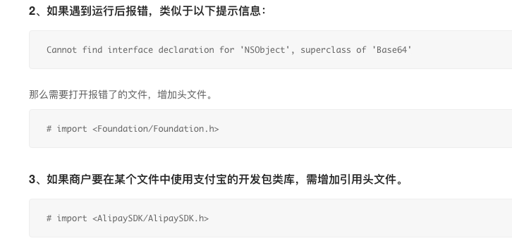 - 在demo里,APViewController.m里“订单模拟支付行为”,问后端同事拿了rsa2Privatek (因为注册是后端同事做了),直接添加到demo里测试模拟生成签名,ok成功了,但到自己项目时就不行了,原因是后端同事也会根据订单信息生成签名与用前端生成的签名做比对,但是是后端同事生成签名的方法错了,当是就是遇到这个坑搞了好久。生成签名一定要严格根据官方的方式生成。这里就不多说在demo“模拟生成签名” NSString *orderString = [NSStringstringWithFormat:@"%@&sign=%@“, orderInfoEncoded, signedString];是两个拼接,一定要注意。