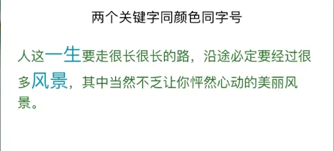 /** 两个关键字同颜色同字号 */