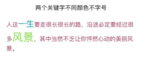 /** 两个关键字不同颜色不字号 */