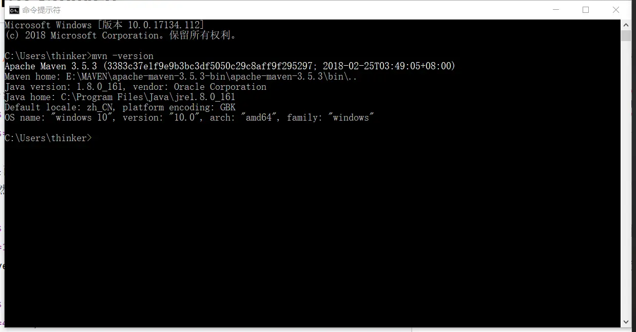 5、打开命令行工具,输入命令 mvn -version ,检测一下安装是否完成。