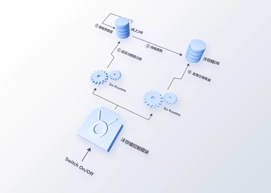 在开始2.0架构设计与改造前,我们尝试使用冷存储方法,通过迁移数据的方式来减轻系统压力(架构设计如图2)。由于数据表数据量太大,并发多个数据迁移任务需要大量时间,清理数据的过程同样会触发重新构建索引,方案的上线并没有根本性地解决问题。