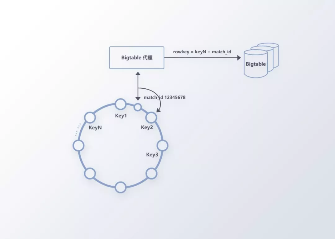 (如图7) 我们在hash环上先预设多个key值作为RowKey的前缀,当获取到match_id时,通过一致性哈希算法得到match_id对应在hash环节点的key值,最后通过key值与match_id拼接构建RowKey。